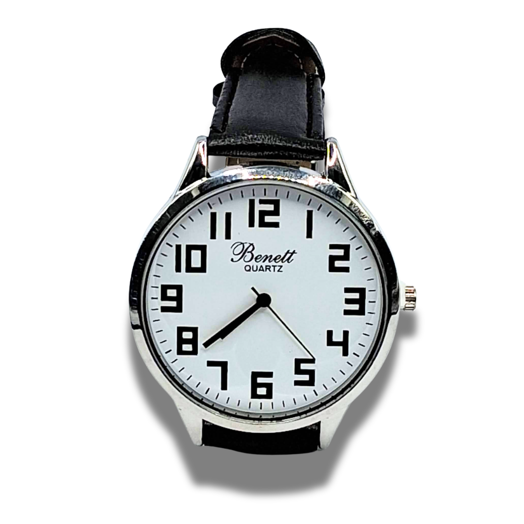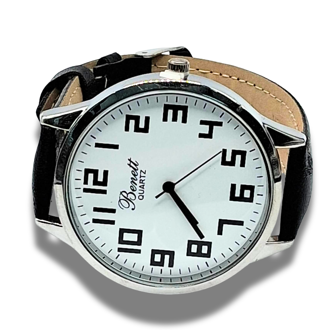 Descriere produs – Ceas Quartz Cifre Mari, Cadran Alb, Curea Piele – Vizibilitate Excelentă